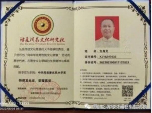 3,中国绝学方氏梨头巫家术传承人。 4,2015 年中华周易名家协会学术主委。