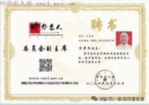 25,2024 年 4 月,荣获“担任中华名人库委员会副主席”。