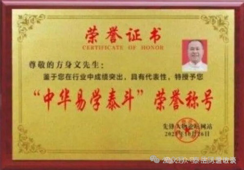 方身文老师自 1996 年从事地理堪舆风水行业以来,得到社会的高度评价和认可,并获得以下荣誉: