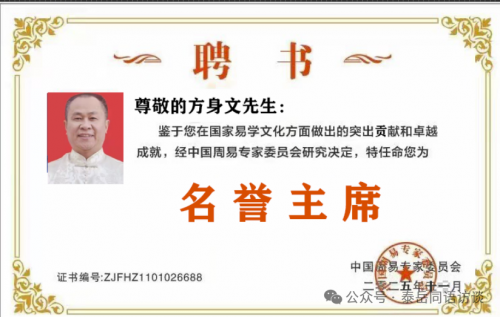 29,2025年 11月荣获中国周易专家委员会“名誉主席”。